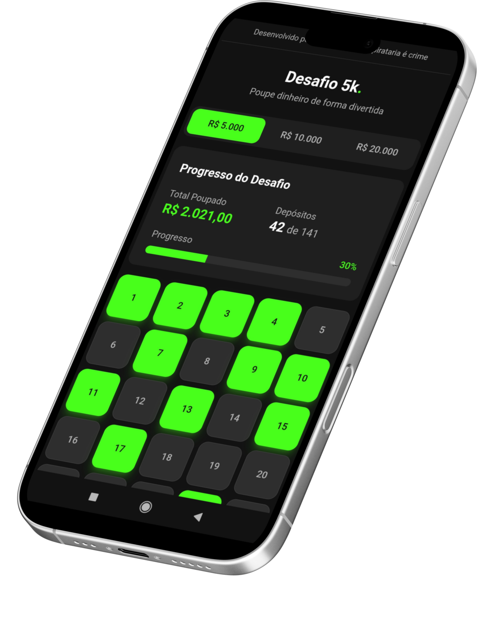 Criamos um app minimalista que transforma pequenos depósitos em hábito, sem planilhas, sem pressão e sem complicação.